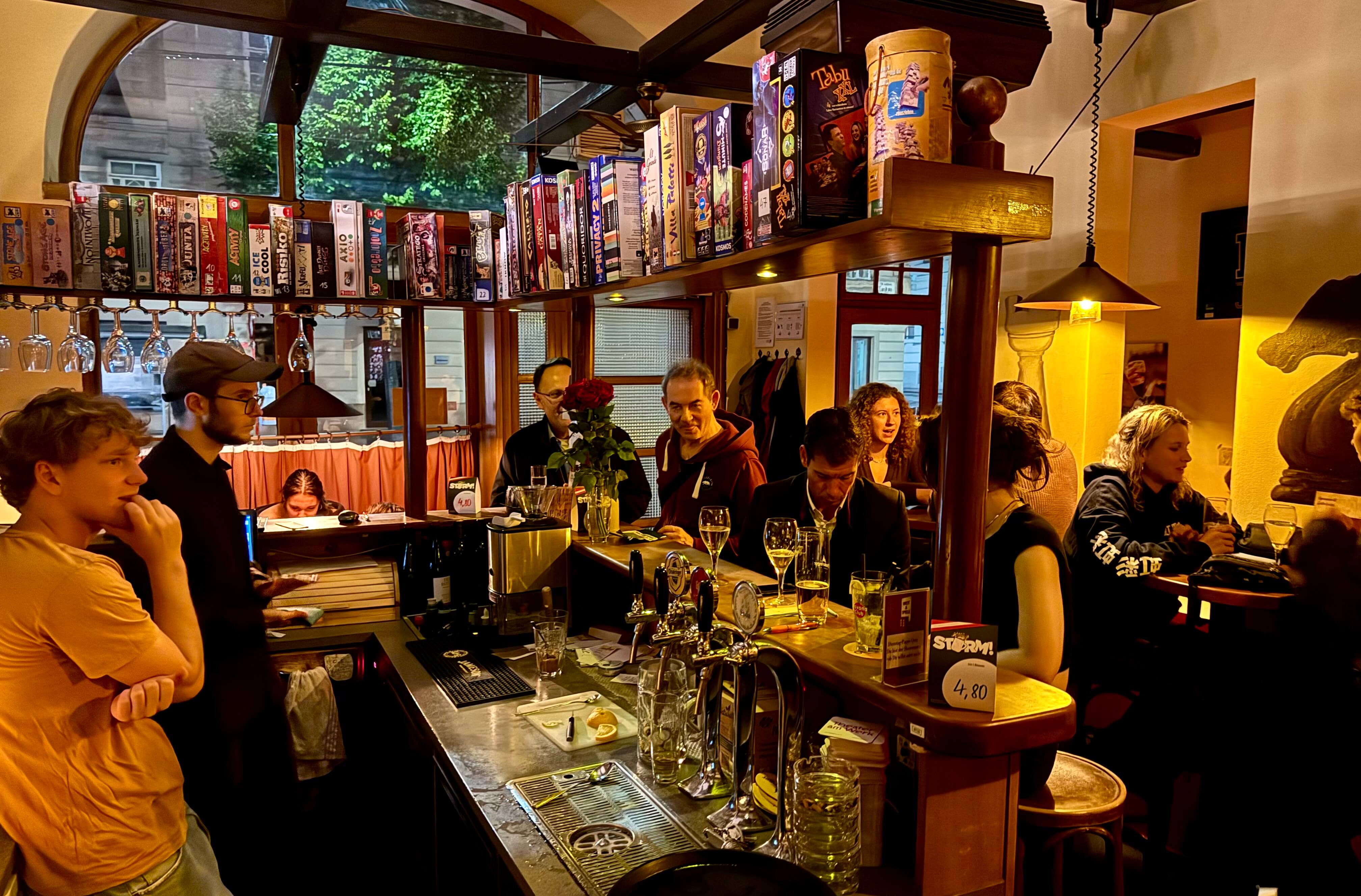 Da die Preise schon damals sehr moderat waren und die Atmosphäre schummrig-gemütlich, wurde das Brot und Spiele bald ein beliebter Treffpunkt bei den Studenten im 8. Bezirk und Umgebung. Man konnte sich damals wie heute jede Menge Brett- und Kartenspiele ausborgen und der Bingoabend am Donnerstag war und ist immer noch ein Highlight.